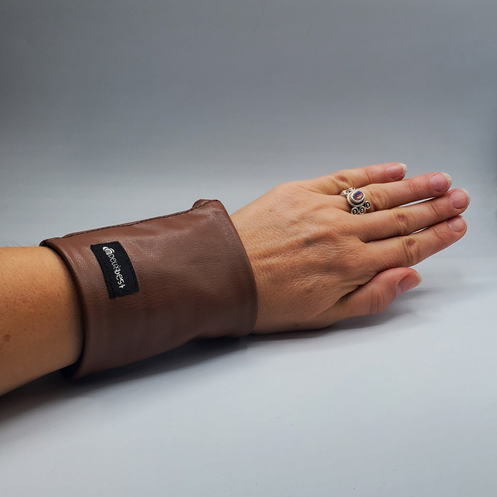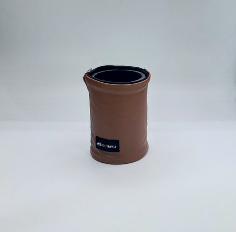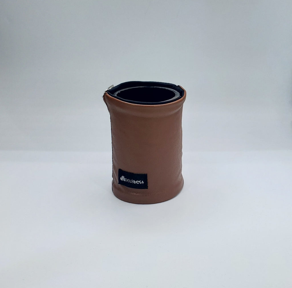 Recto en faux cuir de belle qualité couleur tan, verso noir uni