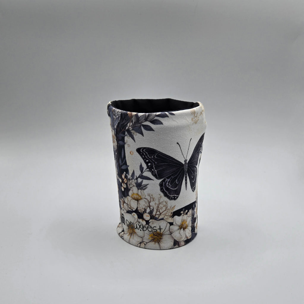 Recto noir avec de magnifiques papillons au fond blanc, verso noir uni
